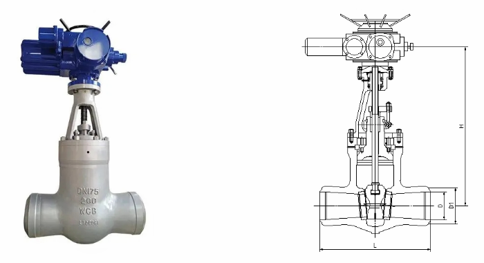 电动焊接闸阀有两种标准形式,一种是遵循ANSIB16.34和JISL1E101标准的引进型,另一种是按JB3595标准的国标型,其遵循的温度-压力等级是一致的,在一些管道中存在着某种互换关系。中部采用无阀盖压力自紧式,在高温高压工况下具有良好的密封性能。自密封圈有两种材料,一种是低碳钢,另一种是柔性石墨316丝(网)。密封面上层焊钻基硬质合金,其加工后的纯金属层≥3mm,具有耐磨、耐高温、抗腐蚀、抗擦伤、使用寿命长。支管两端为焊接结构,焊按坡口可按标准或用户要求制作。适用于火电厂、石油化工、冶金等高温高压的水、蒸汽、油品、过热蒸汽的管道上。