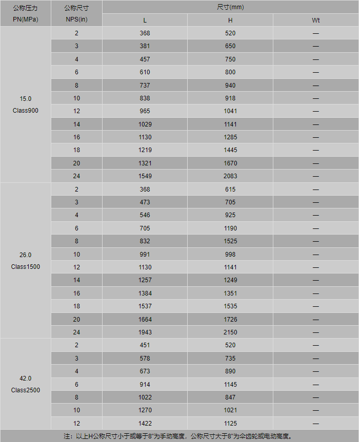 磅级电站闸阀外形尺寸表: