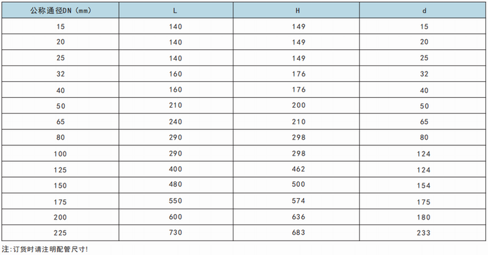 Y型止回阀外形尺寸表: