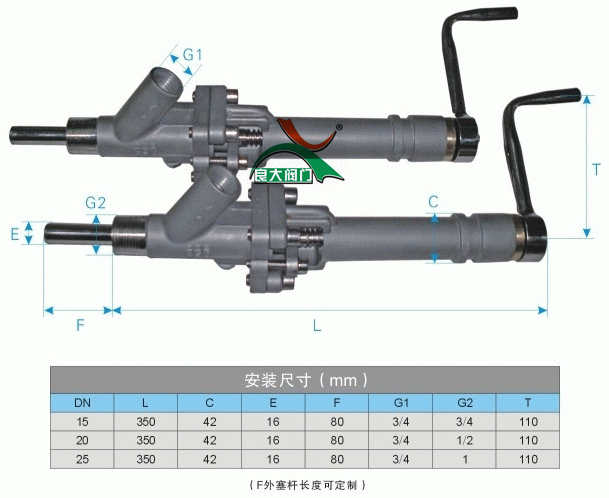 柱塞式取样阀安装尺寸表: