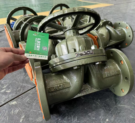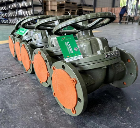 项目应用产品:衬氟隔膜阀,口径:DN100,型号:G41F46-16C,材质:碳钢,压力:PN1.6MPa,适用介质:酸碱腐蚀性液体等,适用温度:120℃。